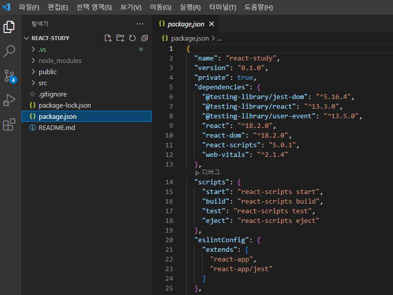 터미널 창이나 PowerShell 창에서 npm start 입력해서 실행합니다.